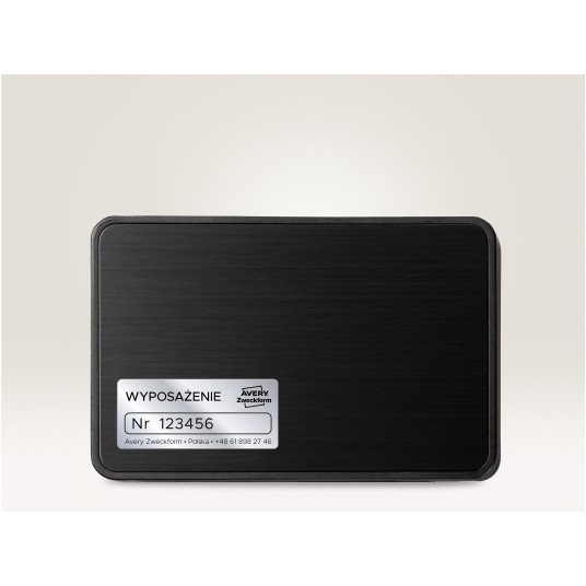 • Etykiety samoprzylepne wykonane ze srebrnego poliestru. • Idealne do eleganckiego i estetycznego oznaczania urządzeń elektronicznych, sprzętów biurowych oraz tworzenia tabliczek znamionowych podczas inwentaryzacji • Bardzo wytrzymałe etykiety wodoodporne, odporne na działanie smarów, brudu, promienie UV i temperaturę od -40°C do +150°C. • Produkcja etykiet Avery Zweckform jest neutralna pod względem emisji CO2 (certyfikat Focus Future) i zgodna ze standardem ISO14001, który pomaga zminimalizować negatywne czynniki oddziałujące na środowisko naturalne. • Przeznaczone do czarno białych drukarek laserowych. • Darmowe i łatwe w użyciu szablony oraz oprogramowanie dostępne na www.avery-zweckform.pl