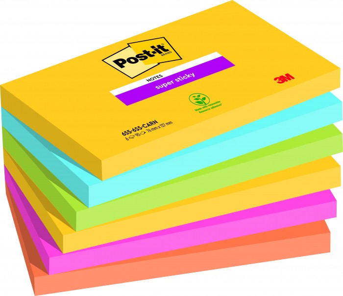Kolorowe karteczki samoprzylepne Post-it® Super Sticky to innowacyjne rozwiązanie na codzienne zarządzanie zadaniami i priorytetami. Dzięki kolorom świetnie się wyróżniają, dzięki Super Sticky trzymają się w każdym miejscu.