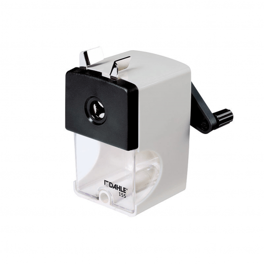 Temperówka na korbkę z mocowaniem do biurka. Wyposażona w przezroczysty duży pojemnik na ścinki. Czujnik zakończenia ostrzenia. Ostrze i zacisk z wysokiej jakości stali. Ostrzy kredki i ołówki do średnicy 12 mm