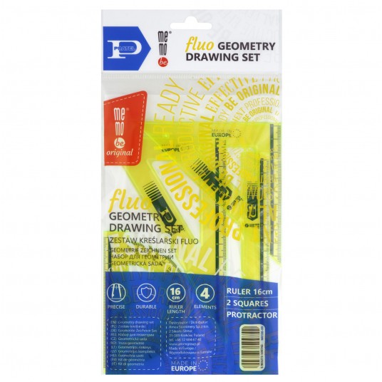 Zestaw kreślarski MemoBe 2 ekierki, kątomierz + li